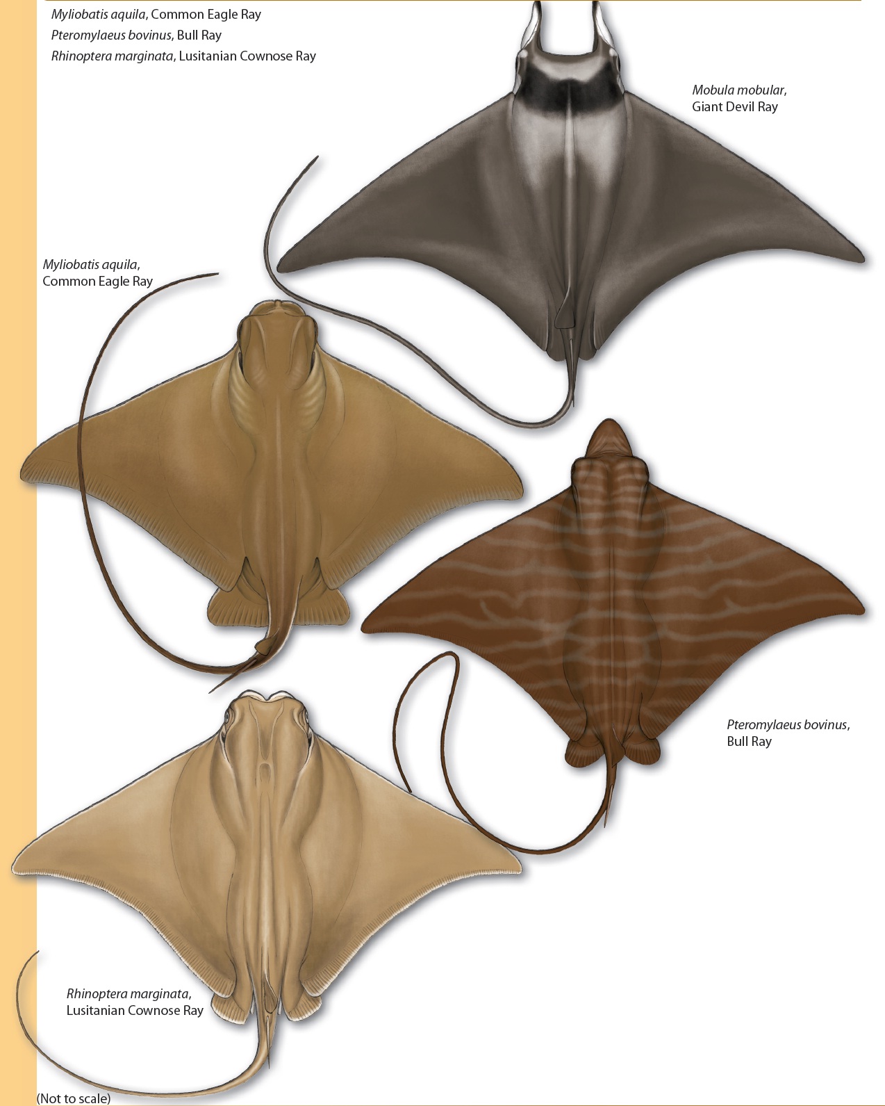 L’allure de certaines autres de autres raies leur vaut d’être qualifiées de « raies aigles ». Trois espèces se trouvent concernées :