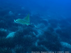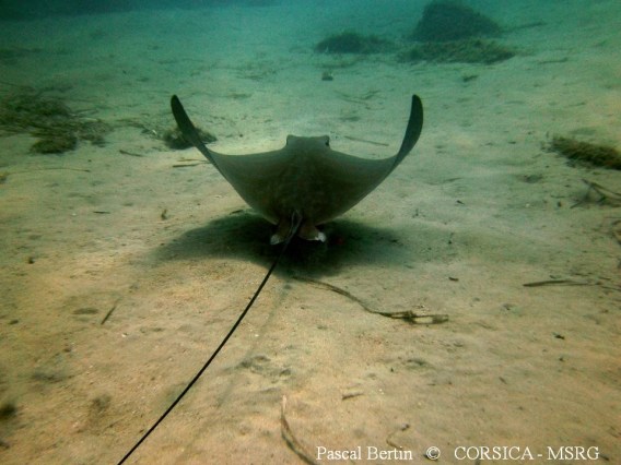 Cette raie, considérée comme assez rare dans les eaux de Corse, tendrait à s’y rassembler au printemps (principalement sur les fonds sableux de la côte orientale, cf. Miniconi 1994 -ref : voir Publications / Publicationi). Elle est parfois également nommée Mourine vachette.