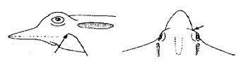 La tête forme une sorte de rostre saillant, dont elle se sert pour fouir les zones sableuses. Son envergure maximale 1, 50 m ; sa longueur de 2 m (LT).