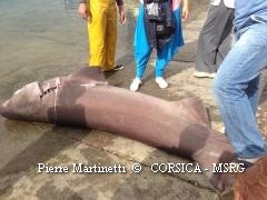 Le 1er mars : un spécimen s’est échoué au nord de la plage de Folelli. Le lendemain, la gendarmerie locale est entrée en contact avec Cathy Cesarini de CARI – Corse, responsable du suivi des échouages de cétacés sur le plan insulaire. L’information a été relayée vers Corsica-Groupe de Recherche sur les Requins de Méditerranée, qui a dépêché sur zone, le 4 mars, une équipe dans l’intention de pratiquer une nécropsie partielle sur site, si l’état de conservation de l’animal le permettait.