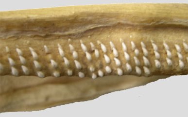 Les dents vestigales du requin pèlerin ne mesurent guèrent plus de 5 mm de haut. – Photo X