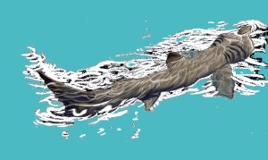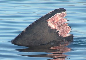 dommages causés par une hélice sur la dorsale d’un requin pèlerin.